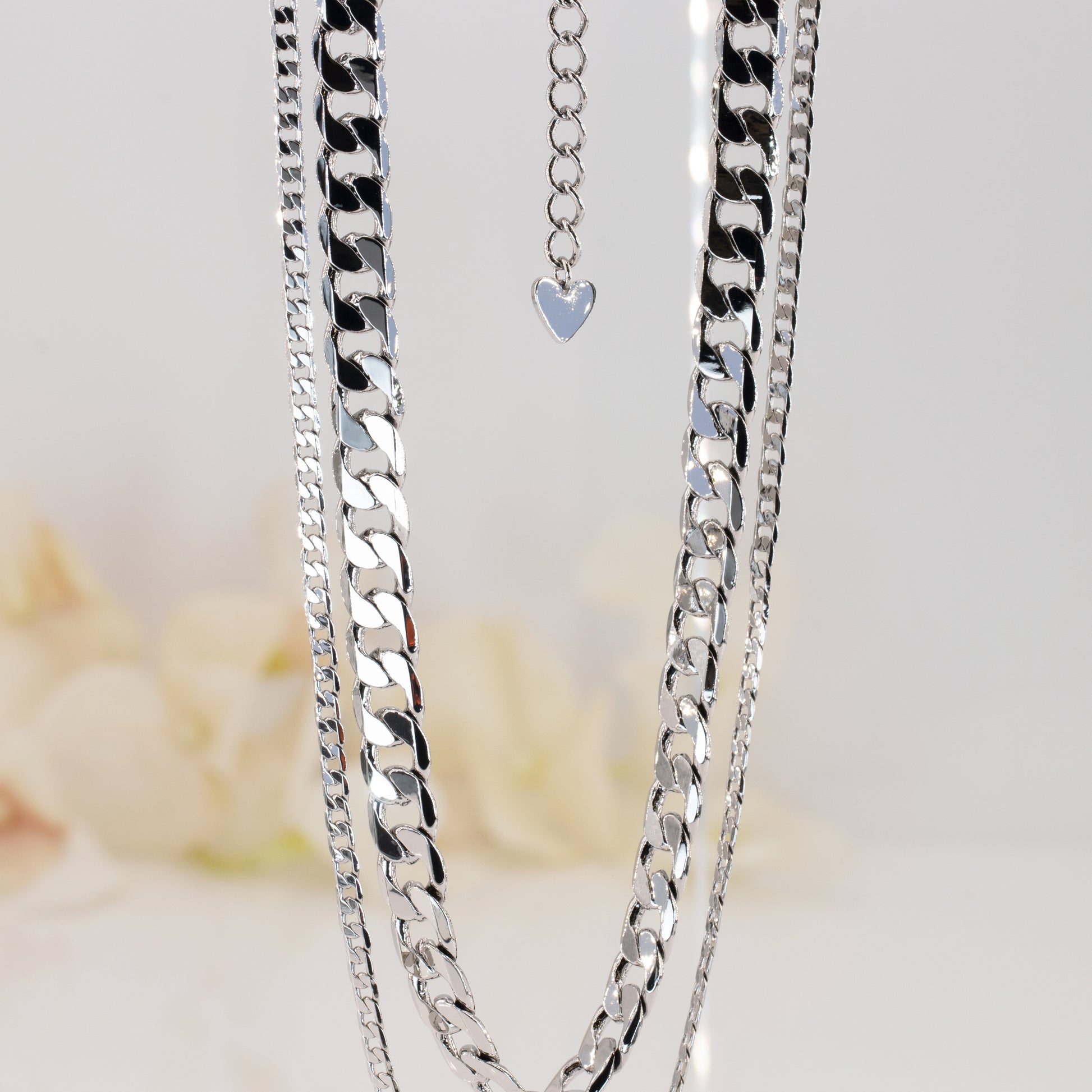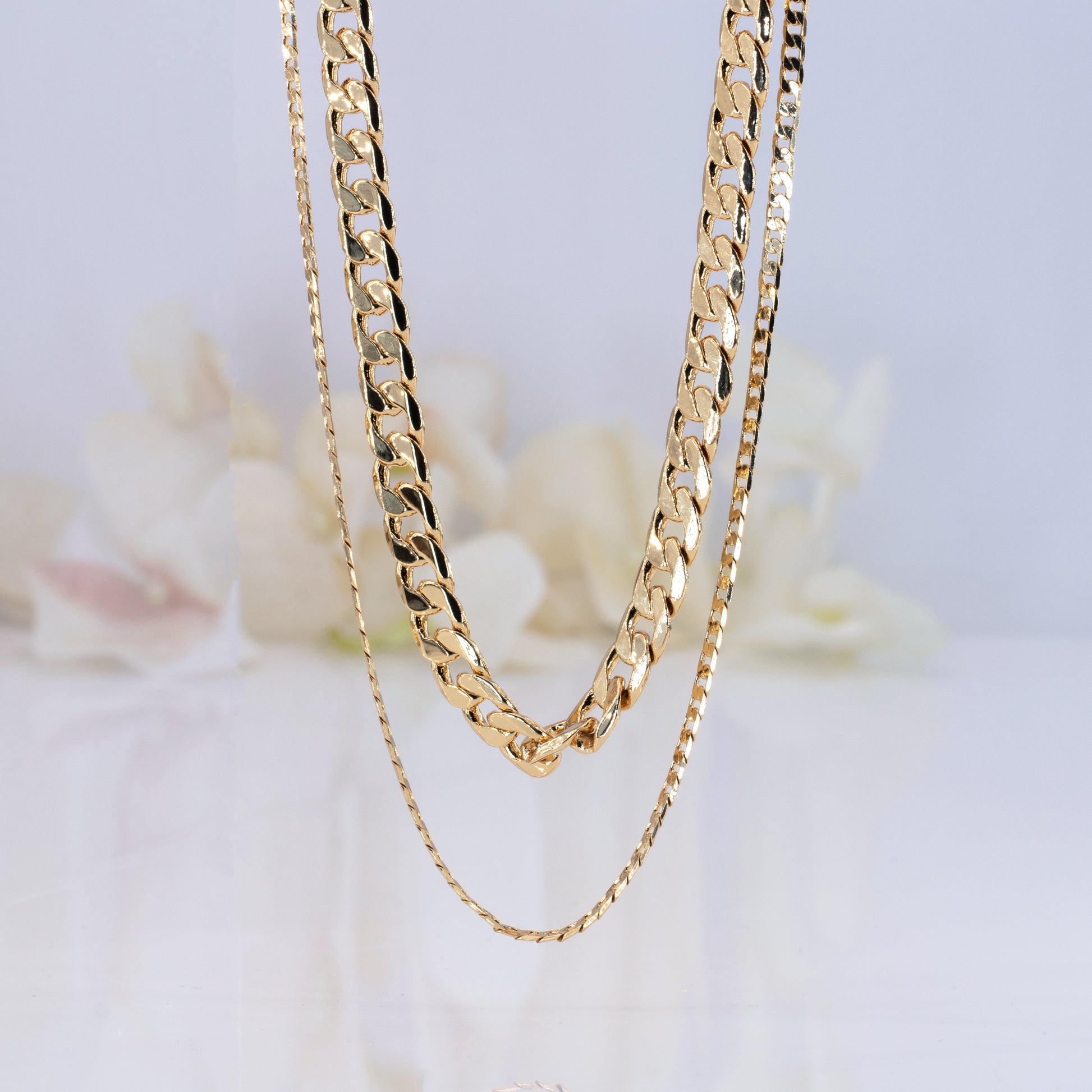 Sold as 2 pieces necklace set as pictures. 14k gold plated or platinum white gold plated. Both chains has separated closers to wear separated or to wear together as layering. High quality flat curved chains comes in 2 different width & length.