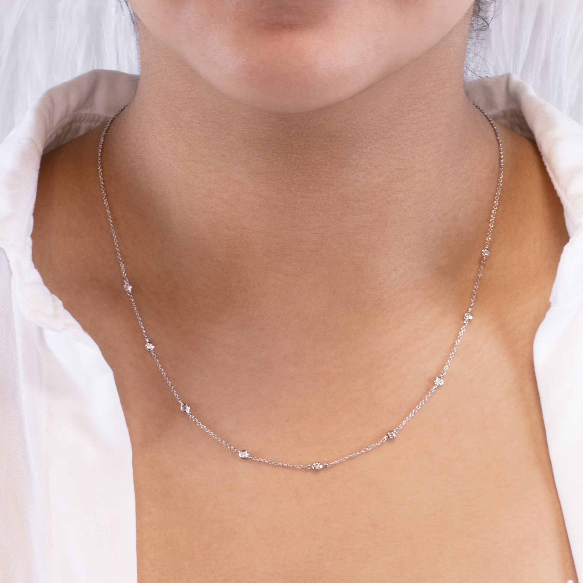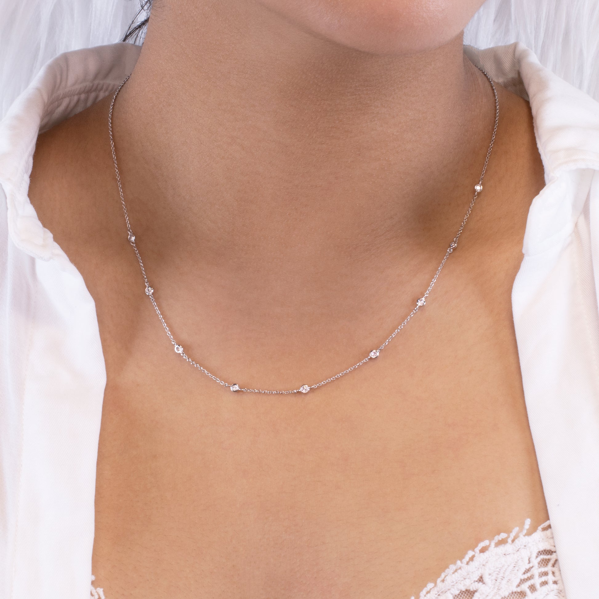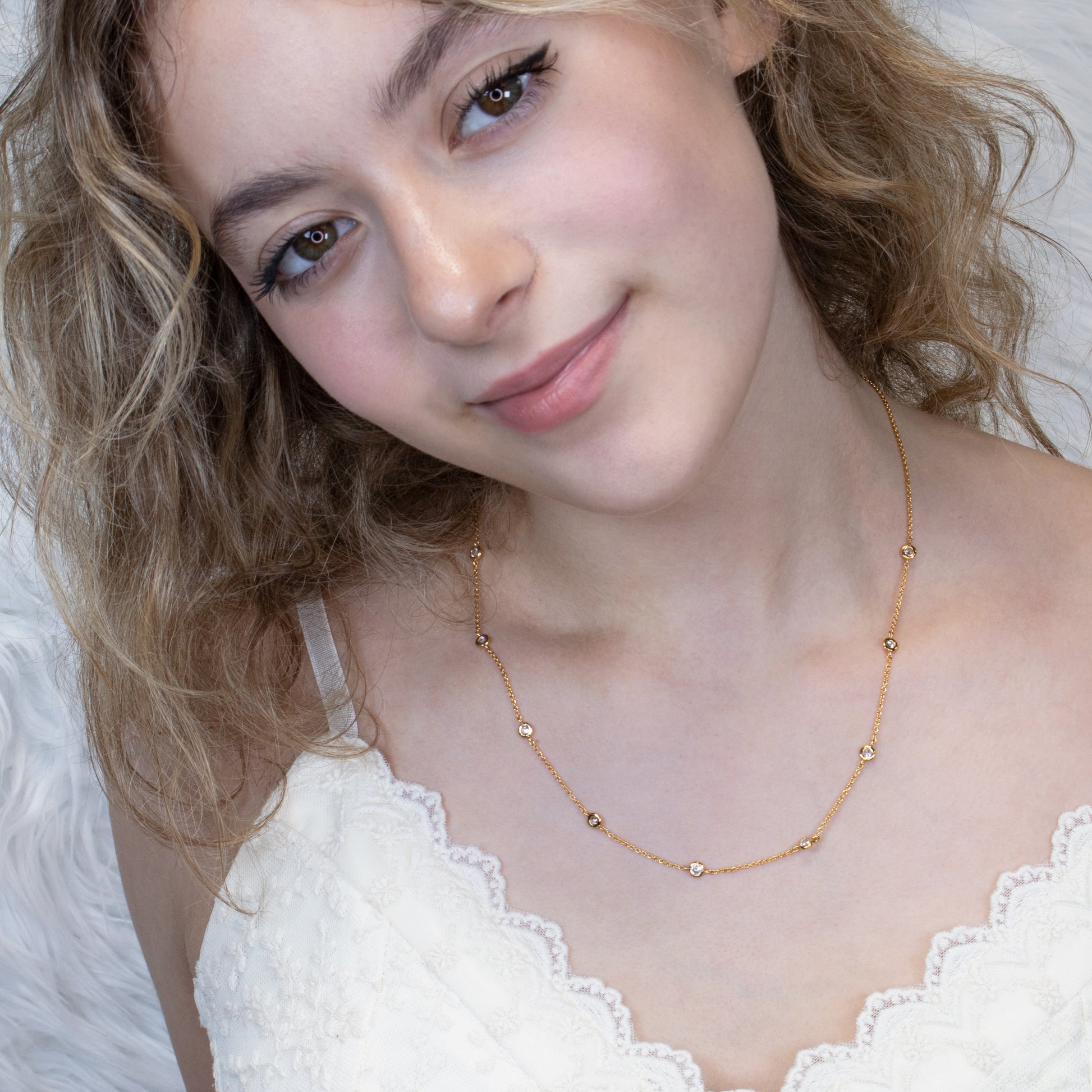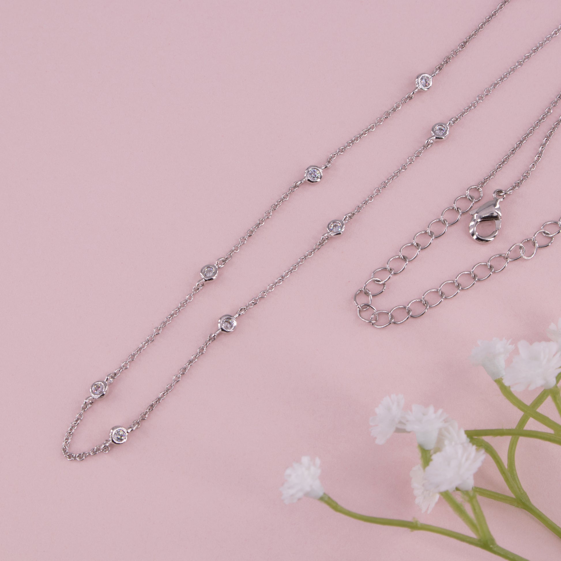 A delicate necklace with cubic zirconia crystals scattered throughout the chain. It is effortless stylish look. The perfect necklace to layer with other necklaces to create your own individual look or worn on its own with any outfit.